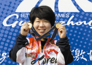 ??????? SOUTH KOREAN shooter Gim Yun-mi said being seven months pregnant might have given her just the boost she needed to win two gold medals yesterday. ????Gim, 28, came from behind to win gold in the individual 10m air pistol competition at the Asian Games, her second gold in Guangzhou. ????“I’m just speechless,” a glowing Gim told reporters afterward, relishing her first international title. Her baby bump was barely noticeable beneath a black T-shirt and baggy tracksuit. ????Gim credited the baby, due early next year, with keeping her focused after she experienced pre-competition jitters. ????“I think my baby helped me stay calm and relaxed,” she said. “I am so happy that we won the gold together.” ????Gim, a newlywed, said she switched to the less noisy 10m air pistol event when she learned she was pregnant with her first child. She originally planned to skip the Asian Games and focus on the 2012 London Olympics. ????But after she posted unexpectedly good results at the nationals recently, husband Jin Chul-gyu encouraged her to go to Guangzhou. ????“I was worried that I’d be a burden to my team because of the baby,” Gim told reporters. “But they were all very understanding and generous.” ????Gim said she would share the golds with her new baby. ????(SD-Agencies) |