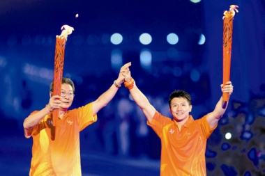DROPPING the common practice of holding an opening ceremony at a stadium, the Guangzhou Asian Games’ organizers moved the center stage onto a boat-shaped island Haixinsha on the Pearl River. In the nimble hands of Chen Weiya, assistant director of the Beijing Olympic pageantry in 2008, his new production was centered on water, the soul of the host city’s coastal origins. Before the show started, athletes, team officials and dignitaries arrived at the site by water following an hour boat-cruise along the Pearl River. “Four year ago in Doha, the Asiad’s flames rose from the desert, and four years later, we will start our Asian Games’ journey from here on the Pearl River,” said Chen. “We have tried to present the beauty of life, the glory of civilizations and the hopes of future through water,” he said. A drop of water fell on the four huge sail-shaped LED screens to unveil the performances. Chen’s team used a tightly-choreographed 70 minutes to portray the colorful history of Guangzhou from a fishing port to modern metropolis, the epitome of China’s revival. Guangdong culture can be seen through the ceremony, from the little boy singing a local children’s song “Heavy Rainfall” on a green crystal palm leaf-shaped boat to a gigantic Red Kapok, the city flower of Guangzhou, in blossom on the water. Local lifestyle, like fishing, boating, dragon dancing and Guangdong opera performances, was depicted on silk paintings unfolded on the huge screen, while later 520 performers played the Liede drum, a local instrument widely used in festival celebrations. At the most exciting moment of the ceremony when Chinese Olympic diving gold medalist He Chong, a Guangdong native, ignited the basin-shaped cauldron, he adopted a most traditional Chinese way of celebration — lighting fireworks. More than 10,000 athletes are competing in 42 sports at the Games, the biggest Asiad ever, which will end on Nov. 27. (Xinhua) |