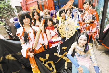 ????Performers pose for a photo. A summer animation festival recently opened in Qingdao. More than 100 cosplay enthusiasts from 20 animation organizations attended the opening ceremony. Wang Yuanyuan, Zhao Jianpeng