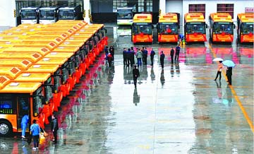 A TOTAL of 756 buses that use natural gas are now in operation in Qingdao and another 444 new-energy buses will be put into use by the end of this year. Of the 1,200 new-energy buses scheduled to enter operation in Qingdao this year, 110 are electric ones. GPS systems are installed in the buses to increase safety and an e-card reading system will save citizens the trouble of bringing with them small changes. In recent years, the city has invested 1.76 billion yuan on low-emission buses. As of the end of 2011, Qingdao will have 3,917 public buses up to national III emission criteria, which comprise 90 percent of all buses in the city. The buses also look better, providing a safer and more comfortable ride to passengers. In the meantime, the city also built more bus parking areas and opened more than 130 new routes covering 1,000 kilometers. (Wang Yuanyuan, Li Xiaohan) |