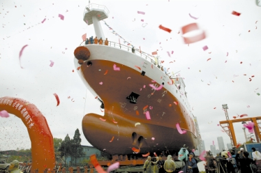 ??? FIVE ocean science research institutions in Qingdao have jointly completed an ocean exploration ship. The name of the ship is “Science.” ??? Costing more than 550 million yuan, the vessel will officially go into operation in June next year. It is expected to become one of the main exploration ships for China’s ocean exploration in the next 10 to 20 years. ??? The most developed ocean exploration ship in China, “Science” has a cruising ability of 15,000 nautical miles and can hold 80 persons. ??? The vessel is equipped with developed devices for exploring and monitoring water, air and seafloor. ??? The completion and later use of the vessel are expected to improve China’s ocean exploration and research, providing a platform for the research of ocean science and development of new ocean technology.(Li Hao, Zhao Di) |