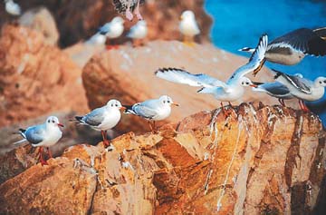 ???  QINGDAO has become home to 100,000 seagulls of 15 varieties. There were only two varieties 18 years ago. ????There are four places in the city with heavy seagull population: the coastal areas in Zhanqiao, Badaguan, the west side of Aomen Road and the Olympic Sailing Center. ????Residents, especially women and children, congregate at Zhanqiao to feed the seagulls.  ????In Badaguan, seagulls rest on the reefs after searching for food in the sea, making the area popular with bird watchers. ????Seagulls fly over the sailing boats at the Olympic Sailing Center, triggering cheers from visitors.  ????A photographer named Liu gets up early each morning to take pictures of the birds on the west side of Aomen Road. ????In 1994, Qingdao became China’s first city to put forages into the sea to attract more seagulls. ????(Li Hao, Zhang Yixin) |