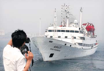 ??? THE mother ship of China’s manned deep-see submersible, Jiaolong, set out from Qingdao on May 28 and loaded the submersible in Jiangyin in Jiangsu Province, heading for a 7,000-meter dive.  ????The vessel, named “Xiangyanghong 09,” is due to arrive in an experiment zone in the southern sea area of the Marianas Trench on June 10 and complete the dive at the end of June, then returning to Qingdao in mid-July.  ????The mother ship has been used more than 10 times as part of China’s sea explorations and visited countries such as Japan, South Korea, Russia, North Korea and the United States. ????The national marine administration approved June 20 in 2006 the use of the ship as the mother ship of the submersible.(Li Hao, Sui Jun) ???? |
