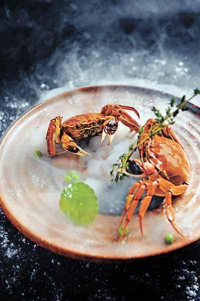 Special à la carte hairy crab dishes include Huaiyang cuisine such as golden crab meat soup with bird’s nest, hairy crab baked in ginger and garlic, crab meat and pepper tower in a hot and sour sauce, and crab roe soup dumplings.