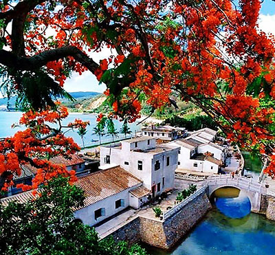 NOT long ago, the Ministry of Agriculture of the People’s Republic of China released a list recognizing the entities responsible for creating recreational fishery brands in which 27 villages were given the honorary title “Most Beautiful Village.” Among them, you can find Da’ao Fishing Village in Yangjiang, Guangdong Province. Da’ao Fishing Village, located in the southeast of Dongping Township in Yangdong County, is an ancient fishing port with a history of more than 1,000 years. It used to serve as a main seaport in ancient South China. The fishing village is a rarity in Guangdong, where ancient styles and artifacts remain until today, fully represented by numerous relics and bearing testimony to its time-honored history. With a touch of antique flavor, the village is also endowed with picturesque scenery. Approaching the village, which is embraced by a gulf, you will be immediately enraptured by its unique charm. Over 80 ancient houses belonging to fishers dating back to the Ming (1386-1644) and Qing (1644-1911) dynasties are well preserved here. Looking ahead, you’ll see a familiar picture formed by a clear blue sea, berthed fishing boats and old men sitting at the doors of fishing huts, knitting fishing nets with traditional methods while tranquilly gazing at the boats and waves at the sea. Once a main port of the Maritime Silk Road, the village is now home to historical blockhouses and former sites of chambers of commerce and ethnic club houses, making it a nice choice for sightseeing history lovers. With four sides surrounded by mountains and two by water, Da’ao Fishing Village can only be approached via a coastal highway, preserving its identity as a land of idyllic beauty, hardly disturbed by the bustling outside world. On either side of the village’s old streets stand folk houses which used to be shops in ancient times. The front side of the houses looks akin to shops in Suzhou and Hangzhou while the back side resembles houseboats. Among the folk houses, one two-story Western-style building stands out. It’s the former site of the Da’ao Chamber of Commerce. Apart from its nice design, the building has a strong construction with thick walls. It’s said that at the end of the Ming Dynasty and the beginning of the Qing Dynasty, the society was in total chaos. Da’ao, which was far away from the central government with no one willing to administer on its behalf, was a victim of the chaos and became a target of thieves. As a result, from 1912 to 1961, urged by the Chamber of Commerce of the Republic of China, the heads of families joined hands and set up loopholes in the vicinity of the treasury of the chamber of commerce. Whenever pirates entered the village, villagers hid their families in the treasury, protecting them and their property. Walking past the buildings of the chamber of commerce toward the end of the village, a peach leaf-shaped building sits in front of you. It is the folk custom museum of Da’ao Fishing Village, which is said to be the first one in the country. A collection of precious shells, fishery harvesting products, large marine mammal skeletons and imitations of wooden boats from the Song Dynasty (960-1279) is sure to whisk your imagination away to a time long ago. The museum houses over 5,000 pieces of fishing gear, production and marriage artifacts. What cannot be missed are the compilations of the history and stories of fishers and the series of sculptures depicting fishing organized here. Transportation: Buses to Yangjiang depart from long-distance bus stations in Futian, Longgang, Longhua as well as Qiaoshe Bus Station and Yinhu Bus Station. Bus tickets range from 100 yuan to 130 yuan and the bus ride takes around five hours. Take another bus from Chengnan Bus Station in Yangjiang to Dongping Township. The ride takes 40 minutes and costs 10 yuan for each person. Then take a taxi to Da’ao Fishing Village. (Chen Xiaochun) |