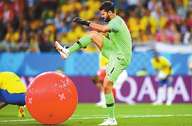 During Brazil’s Sunday match against Switzerland, goalkeeper Alisson resolutely popped a stray red balloon that flew to the box area. The image became an instant viral sensation.