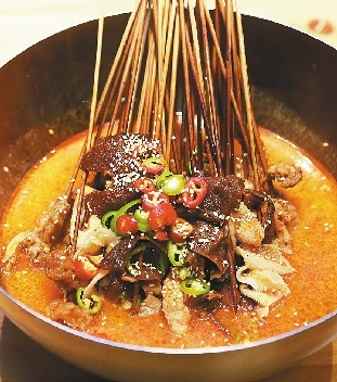 Chen Xiaochun 654789759@qq.com RECENTLY, Yangshaoye Chengdu Chuanchuan Xiang, a restaurant selling cold pot chuanchuan (boiled skewers), officially opened in Luohu District. The restaurant is conveniently located only a stone’s throw away from the Hubei Metro Station. Chuanchuan, vegetables and meat skewers served in spicy broth, is a version of hot pot that is more popular than typical hot pot in Sichuan. Sliced raw meat, vegetables, sausages, shrimps, in fact almost anything edible, are impaled on a bamboo skewer and dipped into a pan of boiling hot spicy soup. It’s called chuanchuan because the food is put on a bamboo stick. There is hot chuanchuan and cold chuanchuan. In hot chuanchuan, the cooking is done yourself as during a typical hot pot meal. However, for cold chuanchuan, chefs will cook the food you choose and the pot you use is cold. Hardy, one of the co-founders of the restaurant, introduced that they founded the restaurant because of a simple childhood dream: to run a restaurant with good friends. “Yang,” one of the Chinese characters in the restaurant name, means “sunshine,” which symbolizes positive energy, while “shaoye” means young master because all the three founders are male. The restaurant aims not only at providing the best-quality mouth-watering Sichuan delicacies to customers, but also creating a positive culture. The chef of the restaurant, who enjoys a working history of 15 years, prepares eight specialties and nine recommended cold pot chuanchuan. Among the specialties you can find spicy beef, fried crispy pork meat, glutinous rice cake with brown sugar, and meat dumplings in spicy sauce. Among the recommended chuanchuan are crispy beef tripe and fresh fish maw. |