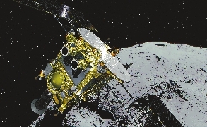 A Japanese probe has reached an asteroid* 300 million kilometers away to collect information about the birth of the solar system and the origin of life after a more than three-year voyage through deep space.