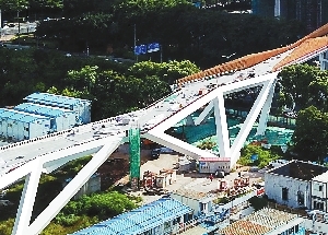 AN aerial corridor connecting Lianhua Hill Park and Bijia Hill Park that spans three urban roads — Huanggang, Lianhua and Caitian roads — in Futian District has been completed. The 1.2-kilometer corridor is receiving its final touches and will be open to the public by the end of the year, according to the contractor, China Construction No. 8 Engineering Bureau. The structure of the footbridge is made of steel and the single heaviest frame weighs 57.1 tons. With two parks at each end and UpperHills, a large urban complex that integrates apartment buildings, hotels and business centers, at its center, the aerial corridor consists of two parts: a 366-meter-long bridge over Huanggang Road and a 243-meter-long bridge over Caitian Road. It will take about 10 minutes to walk between the two parks via the bridge. The two roads, which link Futian CBD with Longhua District, often see heavy traffic, especially at rush hours. The construction of aerial corridors is one way that Futian District Urban Renovation Bureau is improving urban landscaping and separating vehicle and pedestrian flows as the ground traffic in the CBD area grows more saturated. The aerial project is a fore-end engineering project for the development of the Meilin-Caitian area, said the Futian bureau. According to the district’s 13th Five-Year Plan, a total of 55 projects involving 36 billion yuan (US$5.46 billion) of investment will be launched in the area, targeting industrial development, auxiliary facilities and transportation optimization. Upper Hills will be built into a new type of urban complex that integrates the creative industry, high-end research, modern finance and trendy consumption. The China International Consumer Electronics Exchange and Exhibition Center, which is located in Upper Hills and was put into operation in March, is a first-class high-end electronics products center. It covers an area of 40,000 square meters and has attracted more than 300 consumer electronics brands from across the world.(Han Ximin) |