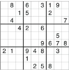 Game rules: Every column, row and box (3×3 marked by heavier lines) must contain all the digits from 1 to 9.
