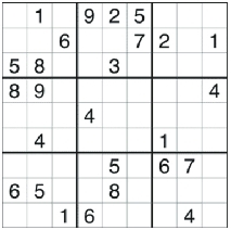 Game rules: Every column, row and box (3×3 marked by heavier lines) must contain all the digits from 1 to 9.