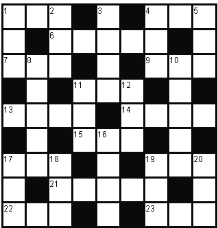 Across 1. Small round veggie 4. Save our souls 6. Chimpanzee 7. Golf peg 9. Small dog sound 11. Ukulele (abbr.) 13. Group playing on same side 14. Twist out of shape 15. Round baked dessert 17. Yes, in a vote 19. Sight organ 21. Singing group 22. Yank 23. Small insect Down 1. Place in position 2. Playing card above King 3. Join together 4. Watch covertly 5. Sticky tree fluid 8. Each one 10. Set in order 11. Umpire 12. Female sheep 16. Thing to worship 17. Perform in a play 18. Electrocardiogram 19. Memorable period of time 20. Consume food |