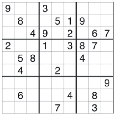 Game rules: Every column, row and box (3×3 marked by heavier lines) must contain all the digits from 1 to 9.