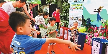 Citizens of Dalang Subdistrict and their children classify garbage on Sunday. The activity aimed to inform residents about environment protection.