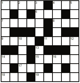 (Solution on Page 04) Across 1. Elude 4. Unhappy 6. Segment of a circle 7. Sanctify 8. Type of tree 9. Very uncommon 11. Make a depression 14. Constrictor snake 15. Burn brightly 17. Tell an untruth 18. Short for Thomas 19. Walk on Down 1. Glowing fragment of fire 2. Beer 3. Simple 4. Place of action 5. Not bright 10. Kingdom, domain 12. Current style or fashion 13. Encourage 14. Wager 16. Had eaten |