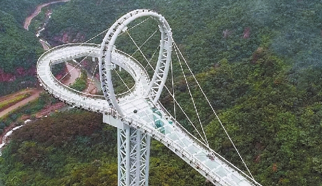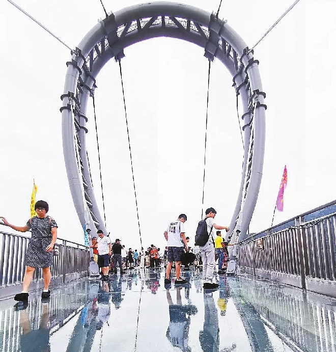 WHEN discussing the most breathtaking entertainment projects, the skywalk bridge in Zhangjiajie, Hunan Province, and the glass skywalk in Chongqing always come to mind. Thrill-seekers who have yet to venture across these skywalks, or want to experience something else to pump up the adrenaline, should check out the sky corridor that recently opened in Qingyuan. The sky corridor, located at the Huangteng Gorge tourist attraction in Qingyuan, is Guangdong’s highest circular sky corridor and opened to the public last month. Supported by three huge steel pillars, the sky corridor is also known as the “big rackets” among tourists because it looks like two tennis rackets laid across the mountain. It extends 368 meters out from a cliff and is 500 meters high, which is equivalent to the height of a 166-floor building. Although you may experience an adrenaline rush when walking, or crawling, along the sky corridor, it’s actually quite safe. What’s more, you can enjoy a nice view. Standing on the corridor, you can see the rafting area and the primitive landscape of the Huangteng Gorge to the north, the urban landscape of Qingyuan to the south, and at dusk a glorious setting sun to the west. During misty days, the whole corridor looks like it’s hanging above a cloud. The team that designed the sky corridor was so creative that they installed 450 water nozzles and nearly 2,000 electric lights on the outermost circular bridge, creating the world’s largest circular musical waterfall with a total circumference of 168 meters. During the daytime, the huge artificial waterfall dances to the music like it’s interpreting an elegant waltz in a formal white dress. At dusk, as the angle of the sunshine shifts, the musical waterfall turns into a crystal curtain, creating a dazzling rainbow. As night falls and the lights are turned on, visitors can enjoy a colorful musical waterfall. Rafting spot Huangteng Gorge is one of the best rafting spots in Guangdong. The rafting area is known as the “smaller Jiuzhaigou” because its water, air and scenery are a close match to the original pristine nature reserve. Its watercourse is six kilometers long, with clear, fast flowing water and a total drop of 168 meters. The highest fall is 16 meters, while the longest measures nearly 200 meters. There are more than 130 falls and the total rafting time is about three hours. Now that summer is here, you can hop on a high-speed train to Qingyuan to escape the summer heat. Haohan Slope Haohan Slope starts right at entrance of the foot of the gorge. There are a total of 888 stairs from the start to the end. Climbing up the slope, you will be embraced by the lush forest. Also, you will encounter some simulated animals, like dinosaurs, tigers and lions. These “animals” even make some sounds and movements from time to time, producing the illusion that you are inside the movie “Jurassic Park.” Romantic sky ladder Before reaching the sky corridor, you will pass through a long passage of Chinese wisteria vines. The pink and purple flowers hanging all around on the green vines produce a romantic atmosphere along the way. Kart racing After feasting on the grand natural landscape, you can take a small rest before trying out the exciting kart racing at the foot of the mountain, which is the largest kart track in Qingyuan. Add: Huangteng Gorge scenic area, Shiban Village, Qingcheng District, Qingyuan清遠(yuǎn)市清城區(qū)石板村黃騰峽景區(qū) Transport: Take a high-speed train from Shenzhen North Railway Station to Qingyuan Railway Station, then take bus 105 or 201 to the Huangteng Gorge scenic area. (Chen Xiaochun) |