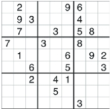 Game rules: Every column, row and box (3×3 marked by heavier lines) must contain all the digits from 1 to 9.