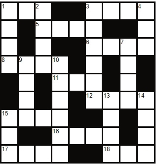 Across 1. Not bright 3. Speak 5. Shrek, for example 6. Pork or beef 8. Plate or bowl 11. Single number 12. Undreground plant part 15. Between shoulders and head 16. To give advantage 17. Watchful 18. Loud noise Down 1. Passed away 2. Plant that grows on rock 3. Tendency to anger 4. Complete package 7. Ammunition 9. Not doing anything 10. NHL sport 13. Has been in debt 14. Change direction 15. Not used before |
