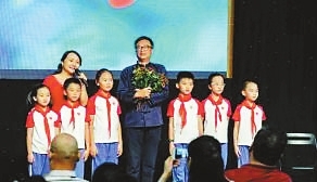 Students perform recitations of poems to celebrate the 35th Teacher’s Day and the 70th anniversary of the founding of China at Shenzhen Library during the weekend.
