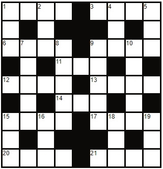 (Solution on Page 04) Across 1. Young female 3. Overlook with contempt 6. Novel: ____ Dick 9. Remain in place 11. Ampere (abbr.) 12. White metal 13. From a great distance 14. Not him 15. Something to sit on 17. Flies on a string 20. Stand in shallow water 21. Slide from lack of traction Down 1. Chewing treat 2. Caress 4. Use it to catch butterflies 5. Young male 7. Grayish green 8. Expensive pleasure boat 9. Small burning particle 10. Separate, not together 15. Stitch with needle and thread 16. Help 18. Writing liquid 19. Not the beginning |
