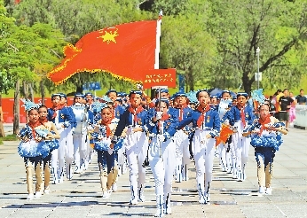 More than 300 students from Hong Kong and Shenzhen attend a celebration for the 70th anniversary of the founding of new China at Shenzhen Children’s Palace on Saturday.