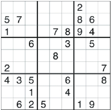 Game rules: Every column, row and box (3×3 marked by heavier lines) must contain all the digits from 1 to 9.