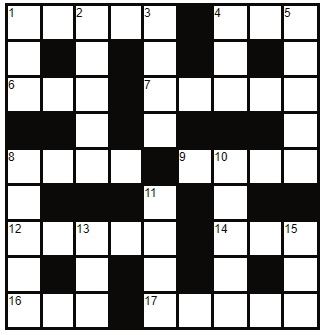(Solution on Page 04) Across 1. Stockings 4. Place in position 6. Farewell 7. Baby owl 8. Change over time 9. Mammal that swims and barks 12. Bring down 14. Consume food 16. Small insect 17. Go into, not exit Down 1. Cry hard 2. Applaud 3. Reveal 4. Buddy 5. Sum 8. Friend of Scooby 10. To throw out forcibly 11. Not false 13. Not dry 15. Sticky black substance |