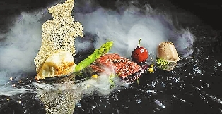 IF traditional cooking is an art form and molecular cooking is a romantic science, then molecular gastronomy is a sub-discipline of food science that seeks to investigate the physical and chemical transformations of ingredients until they are exquisite works of edible fine art. As such, it includes three areas, just as cooking is recognized to have three major components: a social component, an artistic component and a technical component. On Dec. 13 and 14, Eddie Sleong, executive chef at Shangri-La Hotel, Shenzhen, will present a molecular cuisine food show at Shang Palace, which will seat 30 people. With his exquisite cooking skills, Sleong will offer guests a “tip of the tongue trip” experience like never before. Sleong aims to break down traditional senses in his reorganization of the molecular structure of the most delectable foods. Natural ingredients are essential elements to cooking these delicious creations. One creation, called “Ice with Fire,” is made with butter cheese popcorn and passion fruit wrapped in each other and then frozen at a temperature of below 200 degrees Celsius in liquid nitrogen, which quickly solidifies the dessert, making it crisp and cold. In another dish, the smoked scallops and quail eggs, the quail eggs go through countless processes until the dish offers a taste of great warmth and hospitality. The molecular cuisine package is 1,188 yuan (US$170) per person, and advanced booking is required.(Tang Li) |