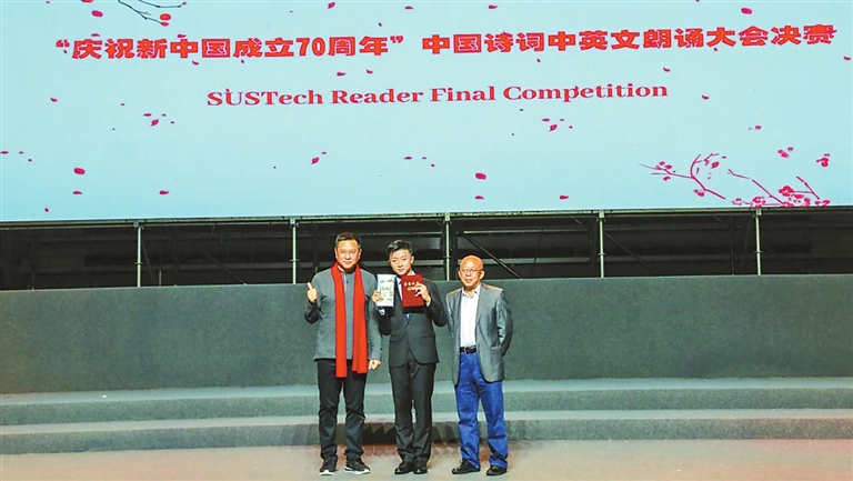 Han Ximin ximhan@126.com The SUSTech Reader Final Competition, a recital competition of Chinese poems in both Chinese and English, was concluded at Runyang Gymnasium in SUSTech on Sunday. Twenty students who passed the preliminaries attended the competition organized by the Center for Language Education and the Center for the Arts of the university in celebration of the 70th anniversary of founding of the People’s Republic of China. Eighty-seven students applied to enter the competition. At the final, 20 student finalists from six colleges read selected Chinese poems, demonstrating their passion for the homeland and sharing Chinese culture with the world through the global languages. Xie Xinyan, a student from Zhiren Residential College, won the first prize. Qin Guoyang and Zhang Xinyi from Zhicheng College won the second prize. Chen Junting from Zhixin College, Zeng Chengxin from Shuli College, and Sun Yuze and Luo Yumeng from Shude College won the third prize. “Poem recitation is not simply imitation. The reciters need to present their own style and interpretation of the poems,” Zhao Deyun, deputy director of the Chinese Language Ability Testing and Researching Development Center, said. Zhao and nine others were invited to sit on the judging panel to evaluate the contestants’ performances in the two-round competition. In the first round, the contestants, in pairs, read the poem “The Young Chinese” by Liang Qichao (1873-1929), the foremost intellectual leader of China of the first two decades of the 20th century, and “Homeland, Oh My Beloved Homeland” by Shu Ting. In the second round, each student read a poem of their choosing in both Chinese and English. Involving ancient as well as modern titles, the poems included “The River All Red” and “Invitation to Wine, Snow, Nostalgia.” Professor Chen Yuehong, dean of Humanities and Social Sciences at the university, said SUSTech needs an international environment for exchanges on its way to becoming a world-leading, innovation-based institution. Besides science and technology, it needs arts and humanities education to cultivate students’ intellect and help make them well-prepared for the future. “Through the SUSTech Reader poetry competition, students not only present a gift for the PRC’s 70th anniversary, but also share with the world Chinese culture,” Chen said. |