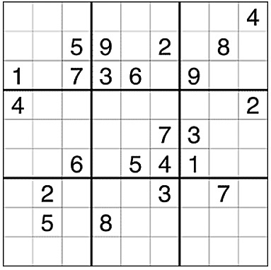 Game rules: Every column, row and box (3×3 marked by heavier lines) must contain all the digits from 1 to 9.