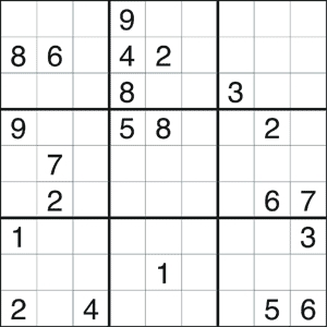 Game rules: Every column, row and box (3×3 marked by heavier lines) must contain all the digits from 1 to 9.