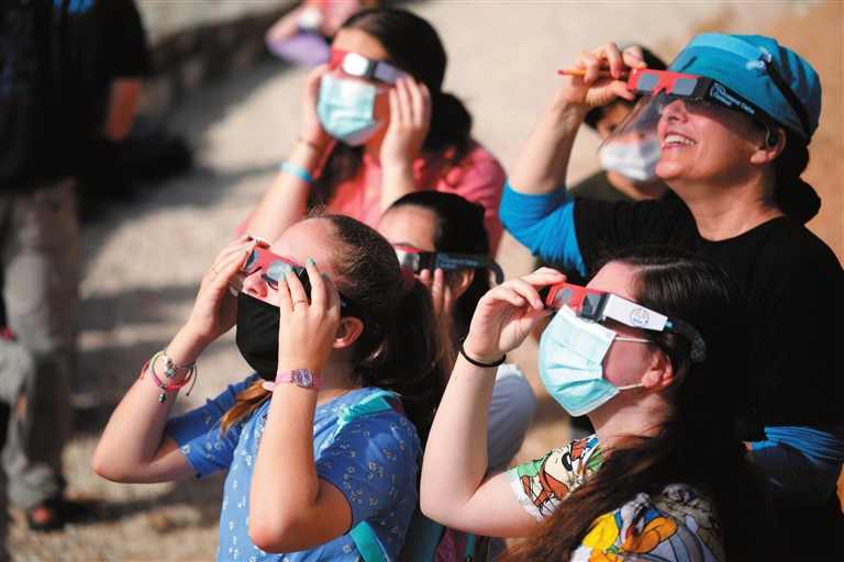 Partial solar eclipse wows sky-gazers People use protective glasses to observe a partial solar eclipse from Mount Scopus in Jerusalem on Sunday. Sky-gazers in Asia and Africa witnessed the rare event as the moon covered a portion of earth’s view of the sun.SD-Agencies Largest single-day increase in virus cases reported The World Health Organization on Sunday reported the largest single-day increase in coronavirus cases by its count, at more than 183,000 new cases in the latest 24 hours. The U.N. health agency said Brazil led the way with 54,771 cases tallied and the U.S. next at 36,617. Over 15,400 came from India. Experts said rising case counts can reflect multiple factors including more widespread testing as well as broader infection. Overall in the pandemic, WHO reported 8,708,008 cases — 183,020 in the last 24 hours — with 461,715 deaths worldwide, with a daily increase of 4,743. German slaughterhouse outbreak tops 1,000 cases A coronavirus outbreak at a German slaughterhouse has passed 1,000 infections, officials said on Saturday. The number of new cases rose to 1,029 from 803 a day earlier, but a local official in northwest Germany, Sven-Georg Adenauer, said that there was no cause for alarm. On June 17, a new cluster of new coronavirus cases was reported among workers at Toennies, the country’s largest meat processing facility located in the western state of North Rhine-Westphalia. It was the country’s largest outbreak since May. After initial reports, officials ordered the slaughterhouse to close for 14 days, and ordered testing and quarantine for about 6,500 workers at the site. Saudi Arabia lifts nationwide curfew Saudi Arabia’s Interior Ministry announced on Saturday the lifting of coronavirus restrictions on all the kingdom’s cities starting from Sunday morning. The decision to return to “normalcy” became effective on Sunday, including the return of all economic and commercial activities, the Saudi Press Agency reported. However, all international flights and the Umrah pilgrimage will continue to be suspended until further notice, the ministry said, adding that land and sea borders remain closed. The ministry asserted the importance to follow precautionary measures against the spreading of coronavirus. Honduran president tests positive Honduran President Juan Orlando Hernandez has been diagnosed with the coronavirus, is receiving treatment and will work remotely and through his aides. “As president of the nation and a responsible citizen, I want to communicate that during the weekend I started to feel some discomfort and today I was diagnosed as having been infected with COVID-19,” Hernandez said in a televised speech last week. Coronavirus antibodies may last only 2-3 months A new study published on Thursday in Nature Medicine suggests that coronavirus antibodies may last only two to three months, especially in people who never show clinical symptoms while they get infected with COVID-19, which has killed more than 463,000 people globally so far. Within eight weeks, 81 percent of the asymptomatic people had a reduction of neutralizing antibodies, compared with 62 percent of symptomatic patients. In addition, the study also revealed that antibodies fell to undetectable levels in 40 percent of asymptomatic people, compared with 12.9 percent of symptomatic people. (SD-Agencies) |