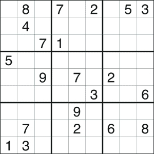 Game rules: Every column, row and box (3×3 marked by heavier lines) must contain all the digits from 1 to 9.