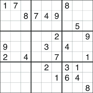Game rules: Every column, row and box (3×3 marked by heavier lines) must contain all the digits from 1 to 9.
