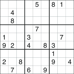 Game rules: Every column, row and box (3×3 marked by heavier lines) must contain all the digits from 1 to 9.
