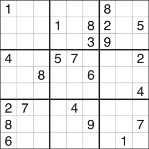 Game rules: Every column, row and box (3×3 marked by heavier lines) must contain all the digits from 1 to 9.