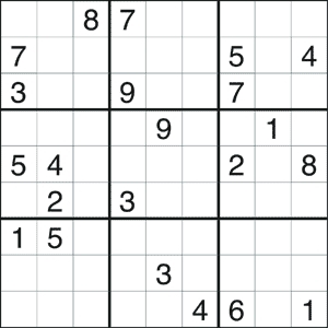 Game rules: Every column, row and box (3×3 marked by heavier lines) must contain all the digits from 1 to 9.