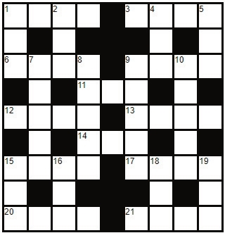 Across 1. Come upon something thought lost 3. It forms over a cut 6. Trick 9. Trade, barter 11. Long-tailed rodent 12. Mark left after cut heals 13. Topmost 14. Canoe paddle 15. Look intently 17. Carry 20. A layer 21. Scorch Down 1. Briefly popular 2. Small bite 4. Bovine 5. Hit 7. Mom or dad’s brother 8. Mistake 9. Begin 10. Turn away 15. Patrick’s nickname 16. Barely get by 18. In debt 19. It’s used to hear |