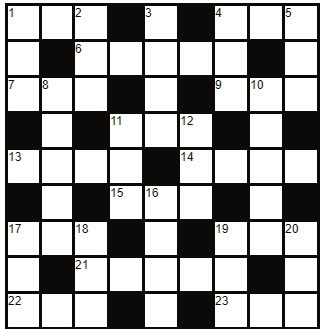 Across 1. Memorable period of time 4. Faster than walk 6. Statement of belief 7. Eastern Standard Time 9. Not even 11. Ampere (abbr.) 13. You do this with a book 14. Undreground plant part 15. Not wet or damp 17. Take flight 19. Resort 21. Plenty 22. Outer edge 23. Very small Down 1. The night before an event 2. Perform in a play 3. Appear to be 4. Kanga’s child 5. Move head affirmatively 8. Outside of a peanut 10. Sag 11. Sum two numbers 12. Force open 16. Thick twine 17. Animal hair 18. Sweet potato 19. Stitch with needle and thread 20. I am, you ___ |