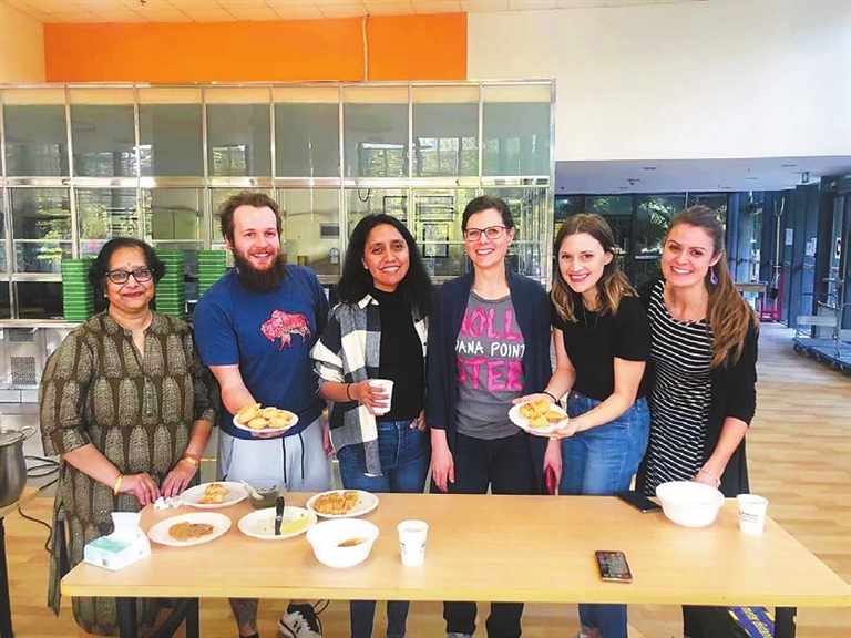 Teachers with the QSI International School in Nanshan are learning to cook Indian food on Saturday with Purnima Gangam (1st L), an Indian vegetarian chef.