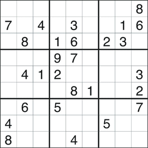 Game rules: Every column, row and box (3×3 marked by heavier lines) must contain all the digits from 1 to 9.