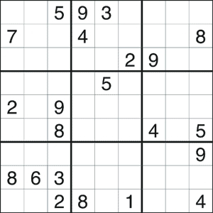 Game rules: Every column, row and box (3×3 marked by heavier lines) must contain all the digits from 1 to 9.