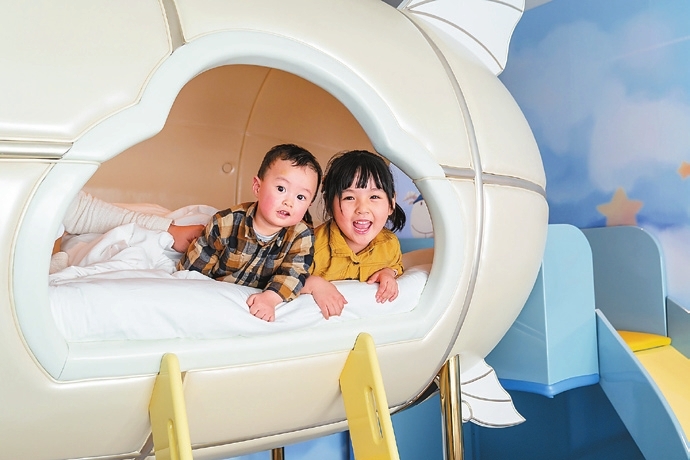 FAMILY holidays and staycations at Four Seasons Hotel Guangzhou have been reinvented, with the debut of the Dream Castle — an interactive children’s playground in the clouds. The journey begins upon check-in with an adorable tailor-made cartoon lamb-themed room key-card. The themed room, located above the 90th floor, has been transformed into a kids’ paradise of more than 60 square meters. The room features a hot air balloon, a dreamer spaceship, a slippery slide and a themed playroom/bunk bed — a child’s paradise! The themed room also includes child-friendly furnishings with a cloud-shaped soft sofa and table and an airplane-themed TV closet and mini bar, which is both fun and safe for all types of play, and is surrounded by the breathtaking skyline of Guangzhou. When night falls, the Dream Castle is reflected on the floor-to-ceiling windows combined with the night views. Other amenities include mini supplies, especially prepared for the little guests including kids’ bathrobes, slippers, bath kits and more. The entire family can also enjoy a Cantonese feast at the Michelin-starred restaurant Yu Yue Heen, and find time to swim in the infinity pool. Meanwhile, mom can enjoy a rejuvenating spa treatment at Hua Spa, or just simply relax in the luxuriously adorned guestroom. Through the floor-to-ceiling windows, each guestroom offers unobstructed views of the stunning skyline and the Pearl River. Whether it’s a luxe staycation or an extended holiday, the Dream Castle is an ideal way to ensure happy little adventurers’ fun.(SD News) |