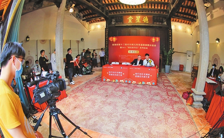 LION dances, qilin dances, paper-cutting, dough sculptures, pyrography paintings, rubbings, guqin performances, Chaozhou tea brewing and the making of Guangming sausages, Hakka snacks, Bao’an milk tea and Cantonese dessert were demonstrated at an event Friday at Datian Craft Culture Village near the centuries-old Datian Ancestral Residence in Longgang District to mark the Lantern Festival. According to the Shenzhen Museum, one of the organizers, participants of the event are all intangible cultural heritage heirs. The event was also livestreamed on various platforms. Built in 1825 by the Chen family originally from Fujian Province, Datian Ancestral Residence is a typical Hakka compound with three halls, several rooms, a pond and a grove.(Cao Zhen) |