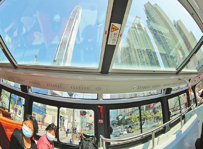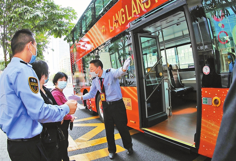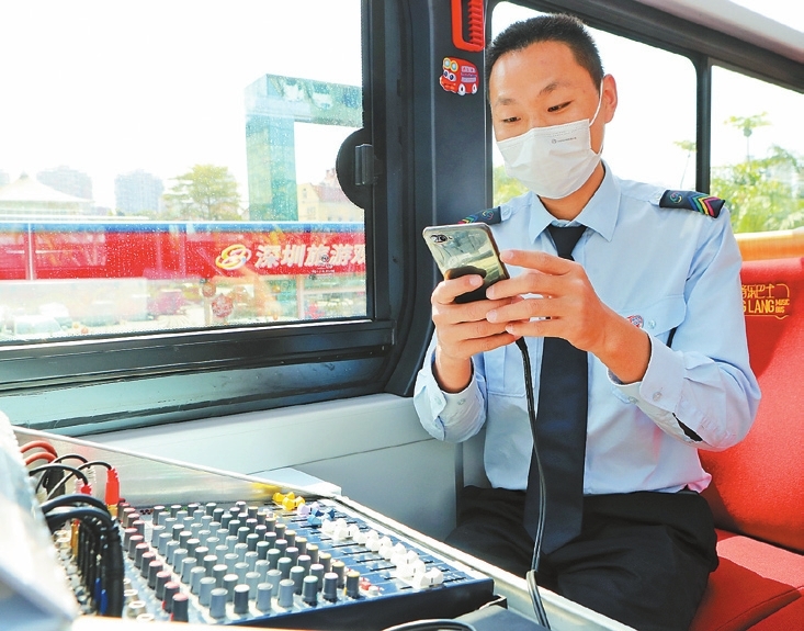 Sun Yuchen, Chen Siqi dg817@163.com AS the Lang Lang Music Bus drove out of the Window of the World bus station, the passengers’ tour on the double-decker sightseeing bus began. The bus went along Chegongmiao, Shenzhen Bay and Tencent’s head office, serving on a route presenting the city’s achievements in the high-tech industry and in environmental protection. Shenzhen Bus Group launched three sightseeing bus lines featuring culture, science and nightview in October last year. These buses are decorated in red, received a nick name of “red fatty.” Passengers can enjoy the splendid view through the windows and the sunroofs. The featured bus has a special music theme named after renowned Chinese pianist Lang Lang. It is equipped with the same seats used in the National Center for the Performing Arts, while beautiful classical music will be played via the 5G and VR technologies inside. The bus driver, 38-year-old Luo Fei, warmly welcomes every tourist. He is always proud to recall the day he received the approval for driving the music-themed bus and was appointed as the bus director by Lang Lang last October. When the photographer’s camera captured Luo, he just said more shoots should be directed at the “red fatty.” Tickets for the sightseeing buses are available at the WeChat account “szlyggb” (“深圳觀光巴士”). A day ticket is 50 yuan (US$7.73) for adults and 30 yuan for the elderly and children. Visitors can take unlimited rides on any of the three routes within 24 hours after the first ticket checking. |