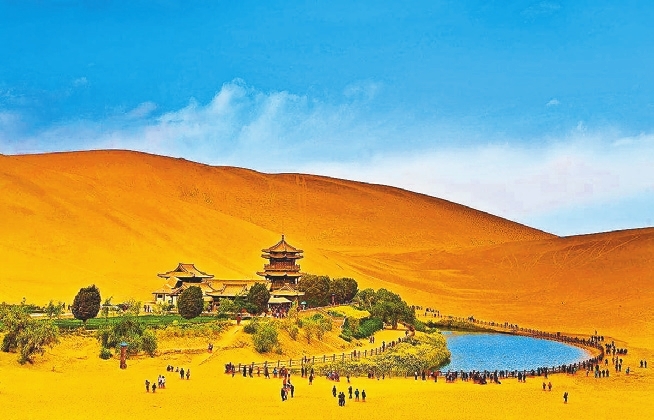 DUNHUANG, which means “grand glory” in English, is a major gateway linking China with the West in Gansu Province. Traces of exchanges between different civilizations can be found in the mottled murals and Buddhist statues of its iconic Mogao Grottoes, the rolling sandstone of Echoing-Sand Mountain, a quiet oasis in the Gobi Desert, mysterious ancient graves and numerous earth-tone ruins. All of this attracts more than 10 million tourist visits from around the world every year. Zhang Yuping, a taxi driver in Dunhuang, said during peak season in July and August, the small city would be packed with tourists. Room prices at four-star hotels and above would be as high as 1,000 yuan (US$154) per night. And he, like the other 1,000 or so local taxi drivers, would work around the clock to serve passengers. “Some tourists are curious about remote, exotic desert scenery, and some have a strong interest in Buddhist art,” he said. The number of tourist visits to the city grew by 20 percent annually during the 2017-19 period, according to He Yanhong, deputy director of the Dunhuang culture, sports, radio, television and tourism bureau. Total tourist visits reached around 7.75 million in 2020, about 60 percent of what it was annually before the coronavirus pandemic. However, October and November last year saw a year-on-year increase, after cross-provincial travel recovered in mid-July, he said. Dunhuang, one of the first cities in China to open to the West, has long been a port of entry along the ancient Silk Road. It borders the Xinjiang Uygur Autonomous Region on the west, beyond which lies Central Asia: Kazakhstan, Uzbekistan and other countries. Farther still lies Europe. The path to civilization may be strewn with thorns, but the result of the journey has been remarkable. When envoy Zhang Qian was sent by emperor Wu during the Han Dynasty (206 B.C.-A.D. 220) to seek diplomatic alliances with countries and tribes in the West, he passed through Dunhuang and thought it was an important base. So he suggested the emperor to build a city in the barren desert. As officials, soldiers and merchants moved to Dunhuang from inland areas, military fortresses were built at Yangguan Pass and Yumen Pass, and Dunhuang established its name firmly in history. Its construction also laid the foundation for cultural exchanges. For thousands of years, traders speaking different languages came to Dunhuang to buy and sell Chinese silk, tea, porcelain, Western gemstones, spices, horses and fruit. The prosperous social and commercial activity has been depicted in paintings on walls of the ancient grottoes. The Mogao Grottoes are a UNESCO World Heritage site with their numerous ancient murals and Buddhist statues in 735 caves. They are a rich resource for artistic and historical exploration. Since opening to the public in 1979, the number of tourist visits surged from 26,000 to a peak of 2.2 million in 2019. Last year, with visitation reduced by the coronavirus, it welcomed 1.39 million visits. Now, it has about 20,000 foreign visits annually, mainly from Japan, the United States and South Korea. The attraction offers guided services in six languages: Chinese, English, Japanese, French, Korean and German. All films, exhibitions and signboards have English translations. In addition to sightseeing, tourists can view the restoration process, digital information collection, environment monitoring center and documents excavated from the caves, Li said. Because the pandemic curbs travel, the grottoes have developed digital platforms, such as online museums, WeChat mini programs and livestreaming for whoever has an interest. Immersive, interactive digital experiences are offered elsewhere in the city. Yangguan Pass, for example, invited tourists to experience the grand ceremony of sending off envoys and soldiers in ancient times, including the issuance of customs clearance documents, a farewell drink of alcohol and the gift of a willow branch. Giving willow branches was a tradition to say farewell to friends in ancient China. Travel agencies provide two typical tourist tracks in Dunhuang: one day to visit the Mogao Grottoes, Echoing-Sand Mountain and Crescent Moon Spring — the most famous scenic spots near the downtown area; or a one-day drive to the western line — Dunhuang studio city, West Thousand Buddha Caves, Yangguan Pass, Yumen Pass and Yadan National Geological Park. Direct flights are available from Chinese cities including Beijing, Shanghai and Lanzhou, capital of Gansu. Deep discounts for tickets and hotels are offered from December to the end of March to promote winter tourism. (China Daily) |