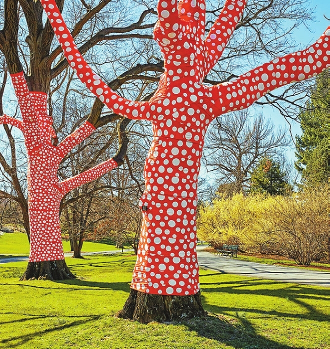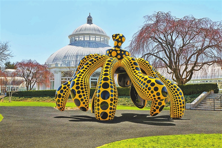PUMPKINS for spring? Groundbreaking — especially when they’re Yayoi Kusama’s. The polka-dotted gourd is as representative of the artist as her line-inducing Infinity Rooms, both of which can be experienced at New York Botanical Garden. Initially slated to open one year ago, “Kusama: Cosmic Nature,” which is set to run through Oct. 31, peppers both early and recent works by the artist throughout the site’s 250 acres. While the Japanese icon has seen many recent retrospectives, none have specifically examined her relationship to nature like this one. “Nature is much more of a visceral inspiration for her. There’s this constant mode of change — cycles of decay, death, or rebirth — that are constant themes that you can see throughout her work,” NYBG guest curator Mika Yoshitake says. “What was really thrilling for this exhibition was working with the artist in thinking about large-scale installations that were absolutely unique to the botanical garden and not something we could do in a museum.” Among the garden’s blooming daffodils and cherry blossoms, visitors will find trees wrapped in red-and-white polka-dot fabric, as well as several monumental sculptures, beginning with “I Want to Fly to the Universe at the Reflecting Pool.” In the pool of the Native Plant Garden, Kusama’s 1966/2021 “Narcissus Garden” is one of the most tranquil works on display. Originally constructed as a critique of art world elitism, 1,400 reflective, stainless-steel spheres now sway gently, naturally rearranging themselves on account of the wind and flowing water. Also on view is “Pumpkins Screaming About Love Beyond Infinity,” in which guests can enter a dark room to get lost in a luminous patch of golden gourds. This summer, a new Infinity Mirrored Room experience can be accessed in a cube in the Home Gardening Center. Another experiential highlight will undoubtedly be the ever-evolving “Flower Obsession,” Kusama’s first obliteration greenhouse. Inspired by her family’s seed nursery in her hometown of Matsumoto, Japan, the space has been furnished with live plants, gardening books, and more horticultural details, all of which will gradually turn coral, thanks to the silk flowers and stickers guests are given to place almost anywhere within the installation. There are several Kusama gems found in and around NYBG’s prized Haupt Conservatory: Larger-than-life blooms are erected from both indoor and outdoor water features, and a glittering mosaic Starry Pumpkin presents a tiled twist on the generally primary-colored motif. But in terms of the curator Yoshitake’s embrace of the botanical context, one of the star features found within the conservatory is a flower bed pathway that reinterprets one of Kusama’s patchwork-style paintings, “Alone, Buried in a Flower Garden,” with concentrations of black pansies, blood-orange nemesia, golden jasmine, and more. For a more traditional white-cube experience, visitors can stop by the Ross Gallery to view images from Kusama’s circa-1966/2021 performance “Walking Piece,” in which she saunters through crowded New York streets in a pink kimono and an umbrella adorned with artificial flowers. Next door in the Mertz Library Building are intimately scaled sculpture and two-dimensional works that span Kusama’s career. Among the earliest and rarest finds are the artist’s 1945 sketchbook from when she was just 16. Her photorealistic depictions of flora and fauna found at her family’s seed nursery evolve into the surrealist and highly expressionistic forms for which she is most known today. (SD-Agencies) |
