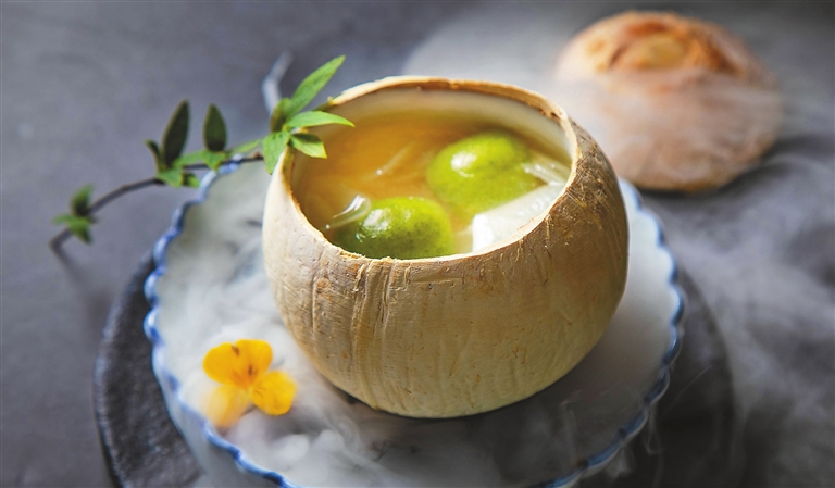 SHENZHEN Marriott Hotel Nanshan has recently launched a series of spring dishes themed “a bite of spring” at its Chinese restaurant, Man Ho. The menu showcases the creative combination of fresh vegetables and quality meats in a variety of cooking styles. To get new inspiration for cooking spring dishes, Man Ho’s executive chef Wayne Wang frequented the vegetable market to select seasonal ingredients. He tried new cooking and food-pairing methods while observing the “Mind Menu” concept of Marriott. The new menu includes 11 creative dishes, which feature exquisite and poetic plate-settings. The appetizer, low-cooked Australian scallop with Chinese toon sprouts, makes use of a low-temperature gastronomic technique and is presented in the shape of a green “hill.” The freshwater culter fish is steamed in three flavors — shallots, green peppercorns and toon paste — for guests to choose from; the emerald-green auxiliary ingredients seem to cover the fish with a veil. The sautéed Dalian abalone with Chinese chives is sliced abalone with spring leek, which is stir-fried to bring out the salty flavor of the ingredients and the rich fusion of flavors. The main dish, braised fragrant rice with Chinese toon sprouts and black truffle sauce, is fragrant and reveals a turquoise island in a sea of color. Other recommended dishes include chilled spring bamboo shoots with kale shoots, chilled golden century eggs with chili pepper, double-boiled fish maw soup with chuanbei and loquat, and sweetened young coconut soup with glutinous rice dumplings. The spring dishes menu is available at Man Ho until April 30 for both lunch and dinner.(Tang Li) |