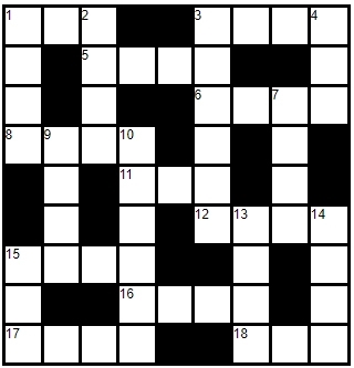 Across 1. Slang for doctor 3. Belonging to you 5. Monster, like Shrek 6. Not short 8. Melody with words 11. Card game 12. Unwanted lawn growth 15. Not bumpy 16. Amongst 17. Close-by 18. Long sandwich Down 1. Canines 2. Veggie on a cob 3. Sunny color 4. Carpet 7. Not nasty 9. Stretched circle 10. Strumming instrument 13. Finishes 14. Plain and boring 15. It blows air around | |