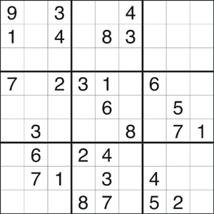 Game rules: Every column, row and box (3×3 marked by heavier lines) must contain all the digits from 1 to 9.